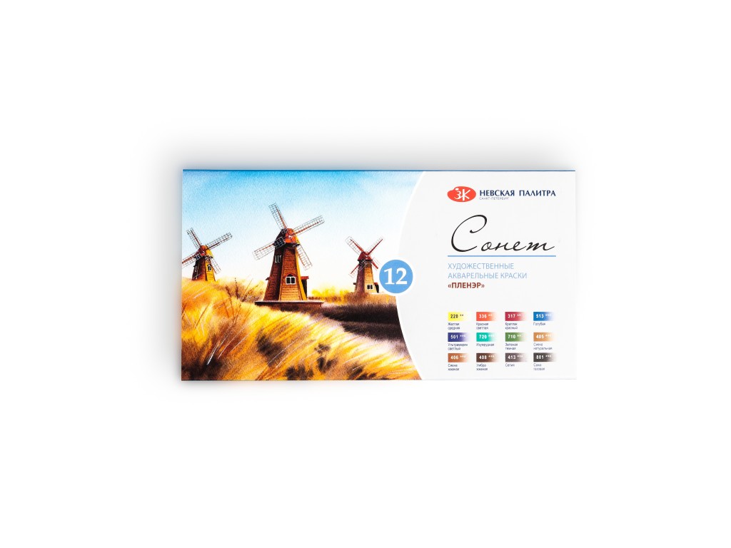Акварель 12цв Сонет Пленэр кювет по 2,5мл, картон