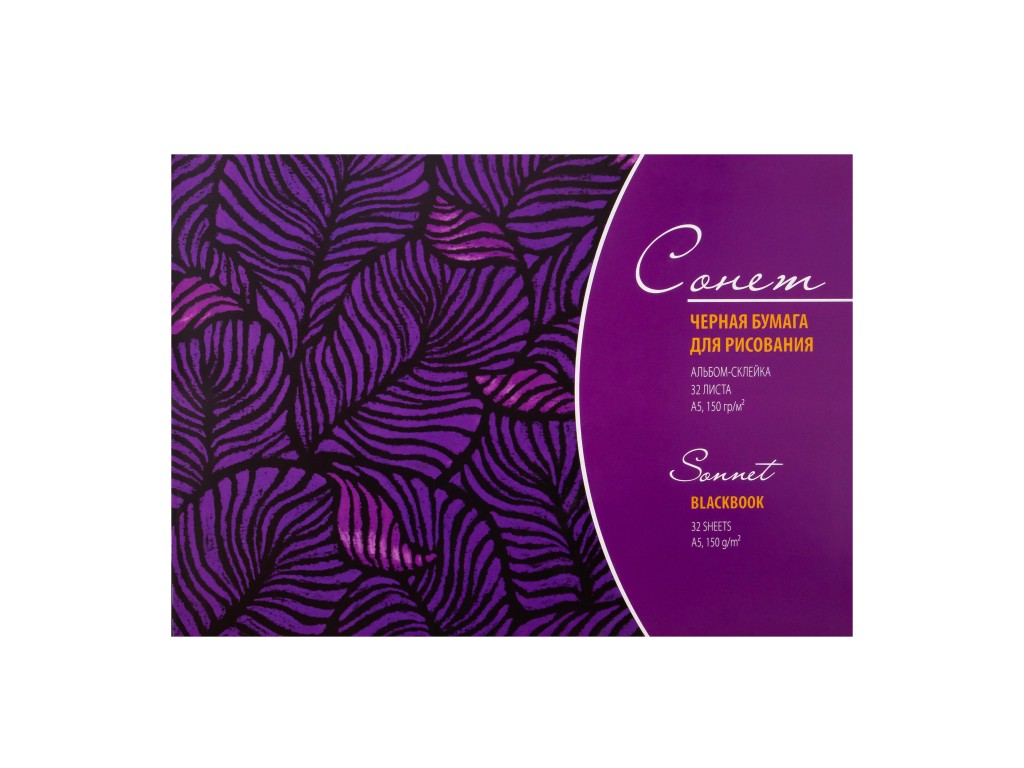 Альбом черной бумаги «Сонет» содержит 32 листа формата А5, плотностью 150 г/м².