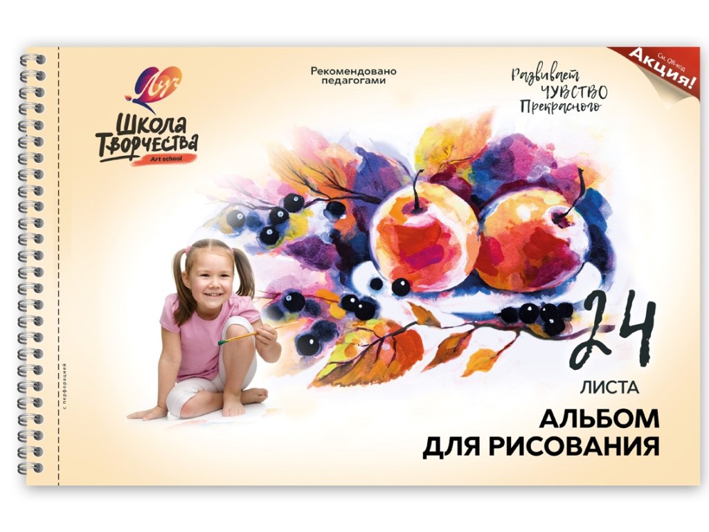 Альбом для рисования 24л, А4, пружина, с перфор Школа творчества Натюрморт Луч