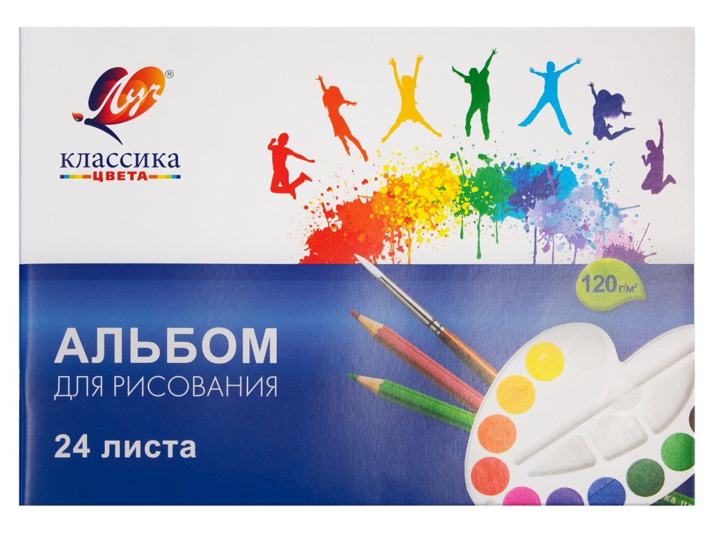 Честный размер альбома на скрепке, формат А4 — 210*297мм. Обложка из высококачественного целюлозного картона плотностью 190г/м3. Внутренний блок из офсетной бумаги плотностью 120 г/м3 из 24 листов. На оборотной стороне каждого альбома мастер-класс по рисованию.
