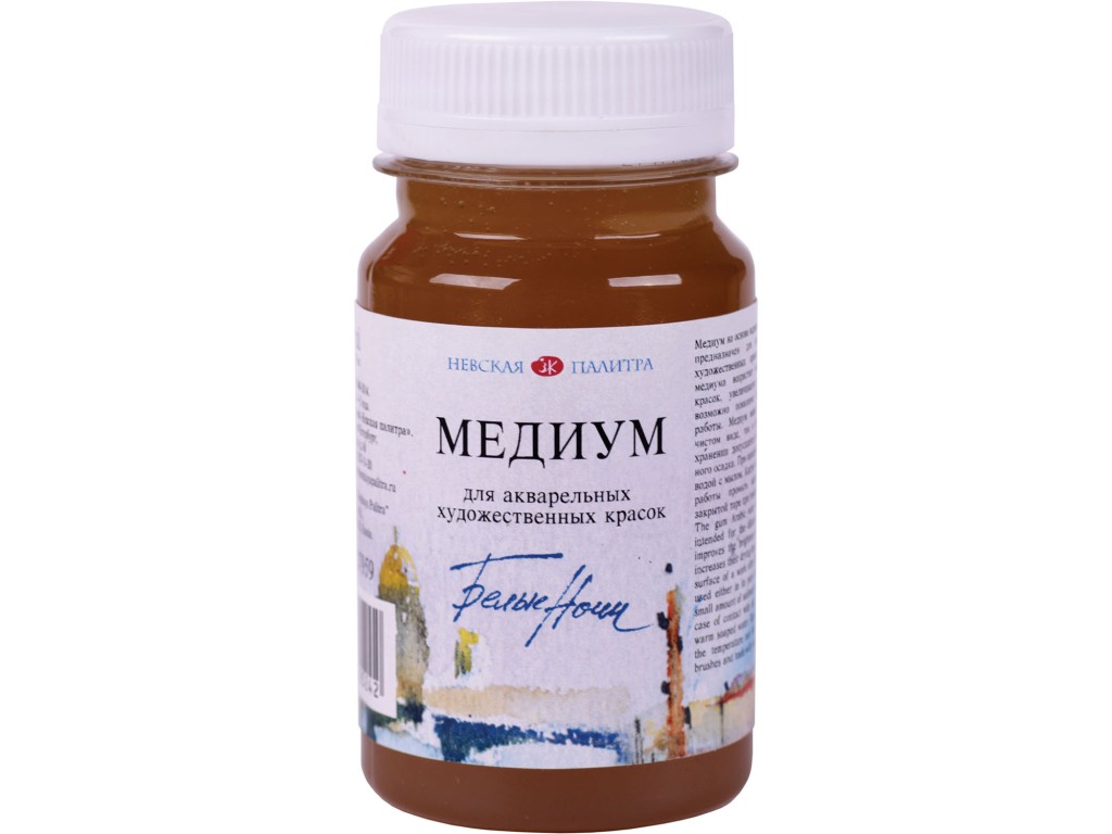Медиум на основе водного раствора гуммиарабика предназначен для разведения акварельных художественных красок. При использовании медиума возрастает яркость и разносимость красок, увеличивается время их высыхания, возможно появление блеска на поверхности работы. Медиум может использоваться как в чистом виде, так и разведенным в воде. При хранении допускается образование незначительного осадка. При попадании на кожу смыть теплой водой с мылом. Кисти и инструменты сразу после работы промыть водой. Хранить в плотно закрытой таре при температуре не ниже 0˚С.
