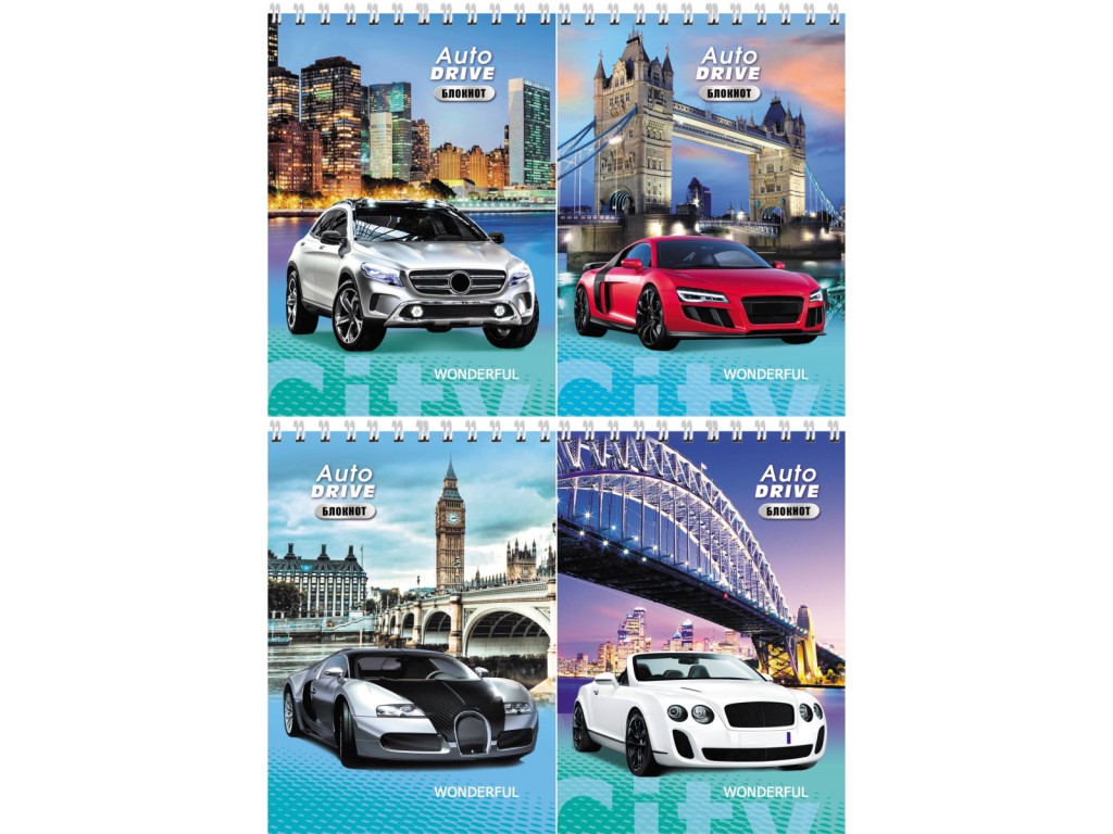 Блокнот 40л А6 гребень клетка МАШИНЫ И ГОРОД ассорти,обл. картон хром,блок офсет «Profit»