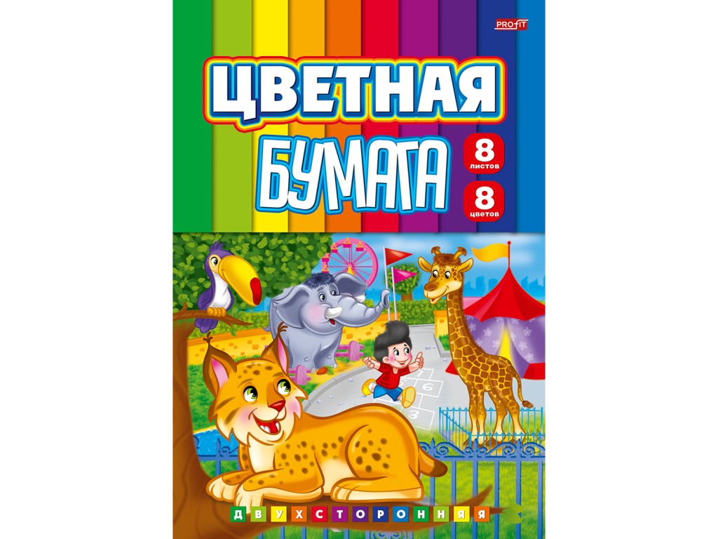 Бумага цветная 8цв 16л 166х240 двухст ПОХОД В ЗООПАРК для дет.творч TM»Profit»