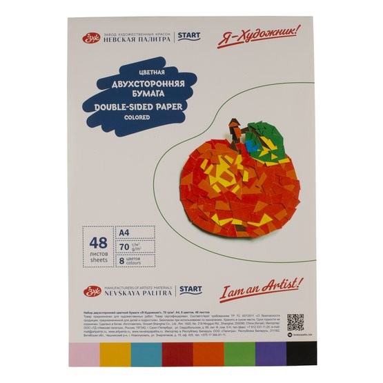 Бумага цветная 8цв 48л А4 двухсторонняя Я-Художник!, 70 гр/м2