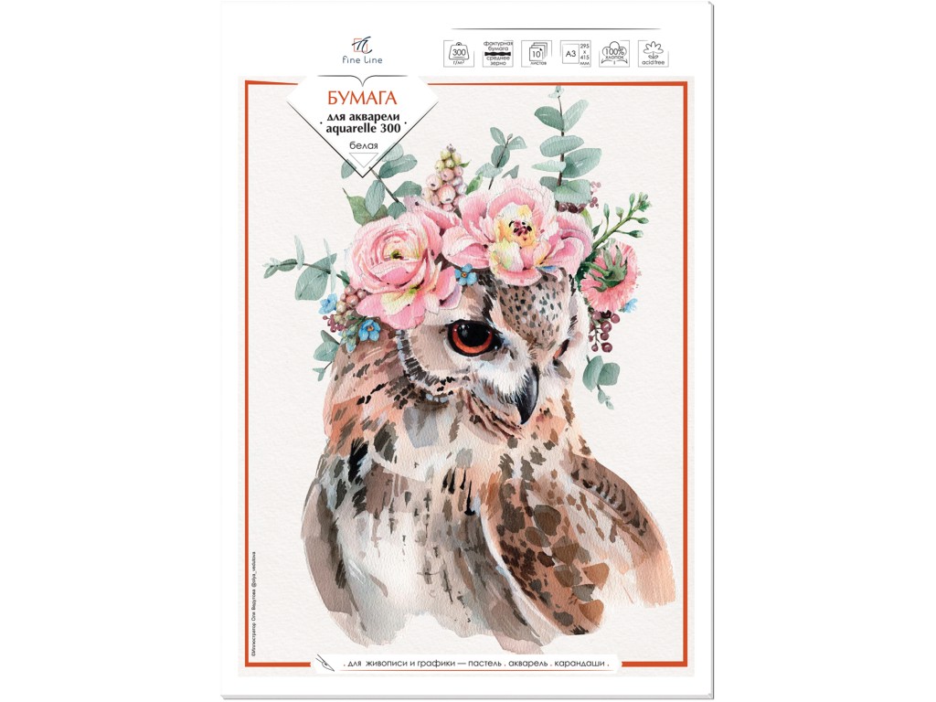 Бумага для акварели А3, 10л. 100% хлопок 300 г/кв.м Полином