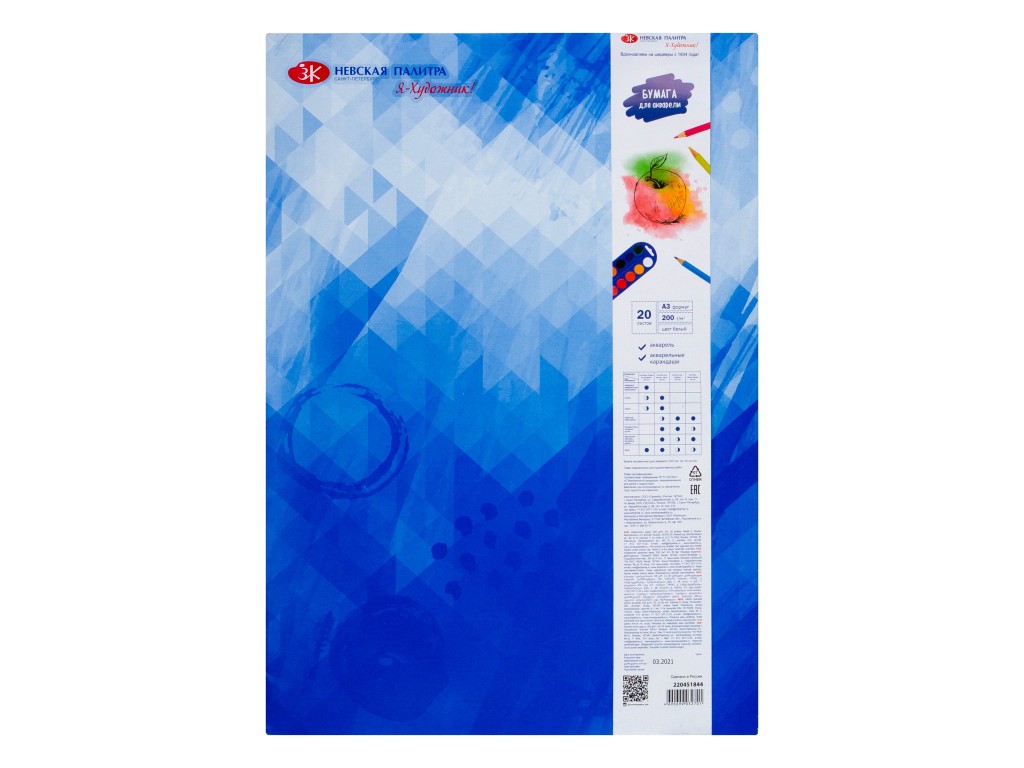 Папка «Я-Художник!» содержит 20 листов акварельной бумаги, плотностью 200 г формата А3.