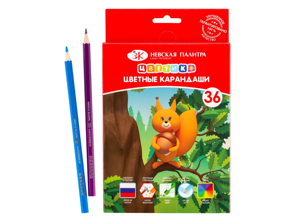 Цветик Набор цветных карандашей, 36 цветов, шестигранные, 2М-4М, заточенные