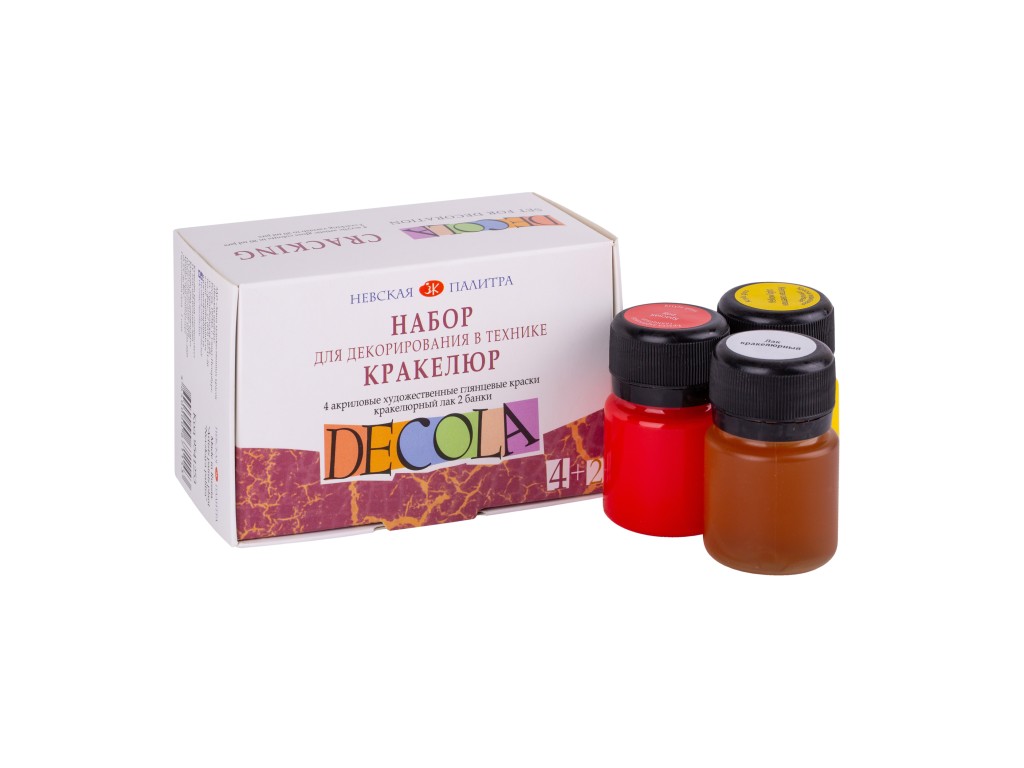Декола Набор акрил глянцевый картон 4 шт х20 мл, крак лак 2 х20