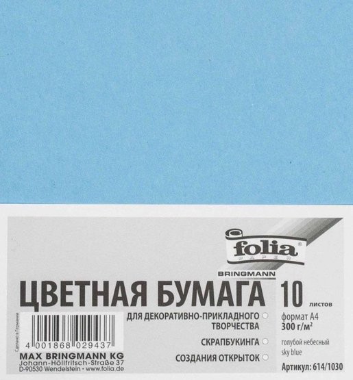 Размер: A4 (21 x 29,7 см), 10 листов/упаковка