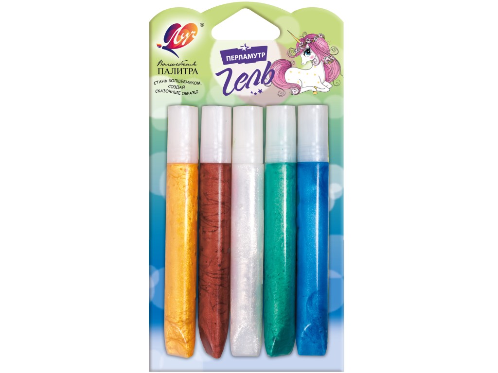 Гель перламутровый с блестками для детского творчества используют для придания необычных переливающихся эффектов, как украшение рисунков, открыток, поделок из глины, гипса, воска, солёного теста, фольги, стекла и т.п. Легко наносится на любую поверхность, при высыхании становится прозрачным, оставляя на поделке переливающиеся блёстки. Время высыхания геля зависит от толщины слоя.Не имеет запаха. Безопасен для детей.