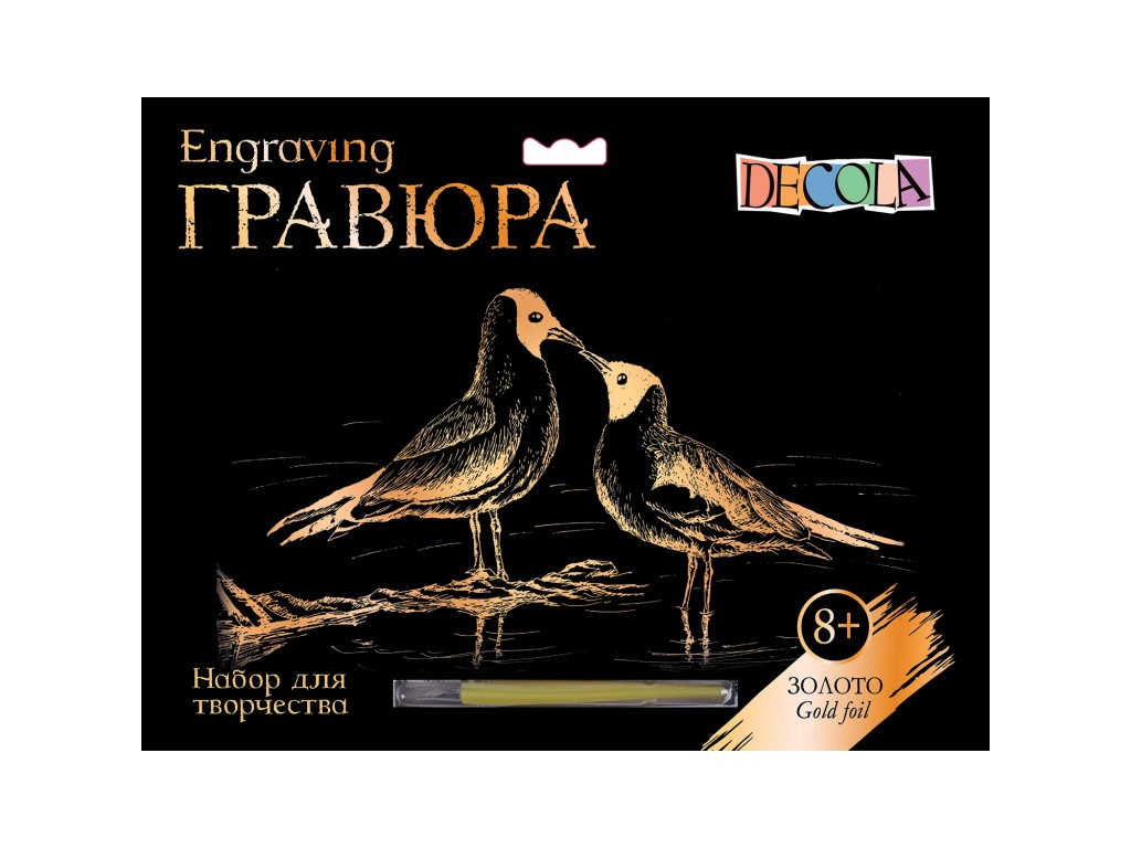 2. Начинайте работу над гравюрой сверху вниз. Аккуратно кончиком пера снимайте верхний слой с изображения. Чтобы избежать отпечатков на черном фоне, рекомендуем подкладывать под руку чистый лист бумаги.