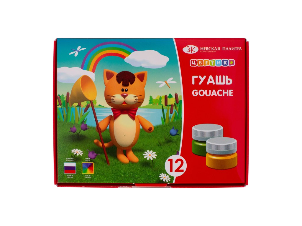 Гуашевые краски «ЦВЕТИК» созданы специально для детского творчества и декоративно-оформительских работ. Они легко наносятся на бумагу и картон. При высыхании приобретают матовую, бархатистую поверхность, легко размываются водой. Перед применением краску перемешать. Храните краски в плотно закрытой таре. При попадании красок на кожу смойте водой.