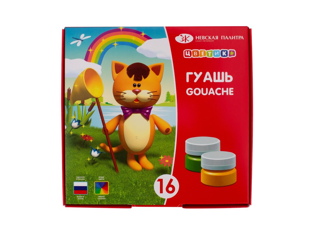 Гуашевые краски «ЦВЕТИК» созданы специально для детского творчества и декоративно-оформительских работ. Они легко наносятся на бумагу и картон. При высыхании приобретают матовую, бархатистую поверхность, легко размываются водой. Перед применением краску перемешать. Храните краски в плотно закрытой таре. При попадании красок на кожу смойте водой.