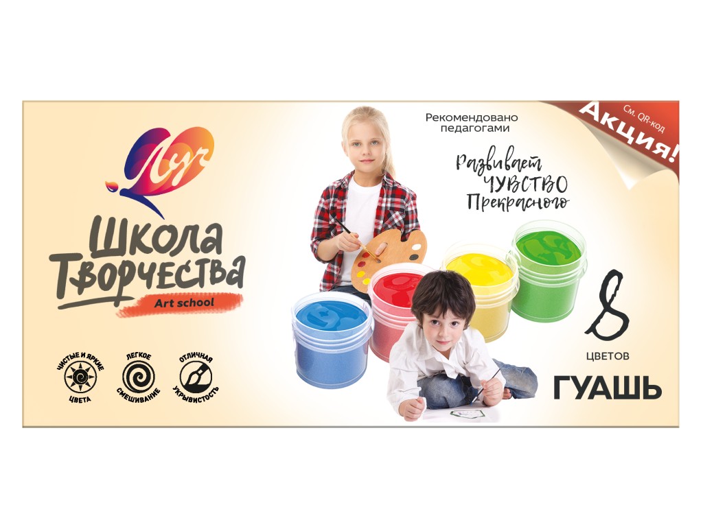 Гуашь «Школа творчества» изготовлена по улучшенной рецептуре. Благодаря этому цвета краски, не теряя своей яркости и красоты, стали максимально подготовлены для быстрого рисования. Краску не нужно предварительно сильно разбеливать и тратить при этом много белил. Благодаря меньшему расходованию белил из набора, цвета красок теперь будут заканчиваться равномерно, что позволит использовать набор более рационально.При высыхании краска не выцветает, приобретает бархатистую поверхность, имеет отличную укрывистость. Гуашь легко смывается с рук и одежды. Не имеет неприятного запаха. Абсолютно безопасна для детского творчества.
