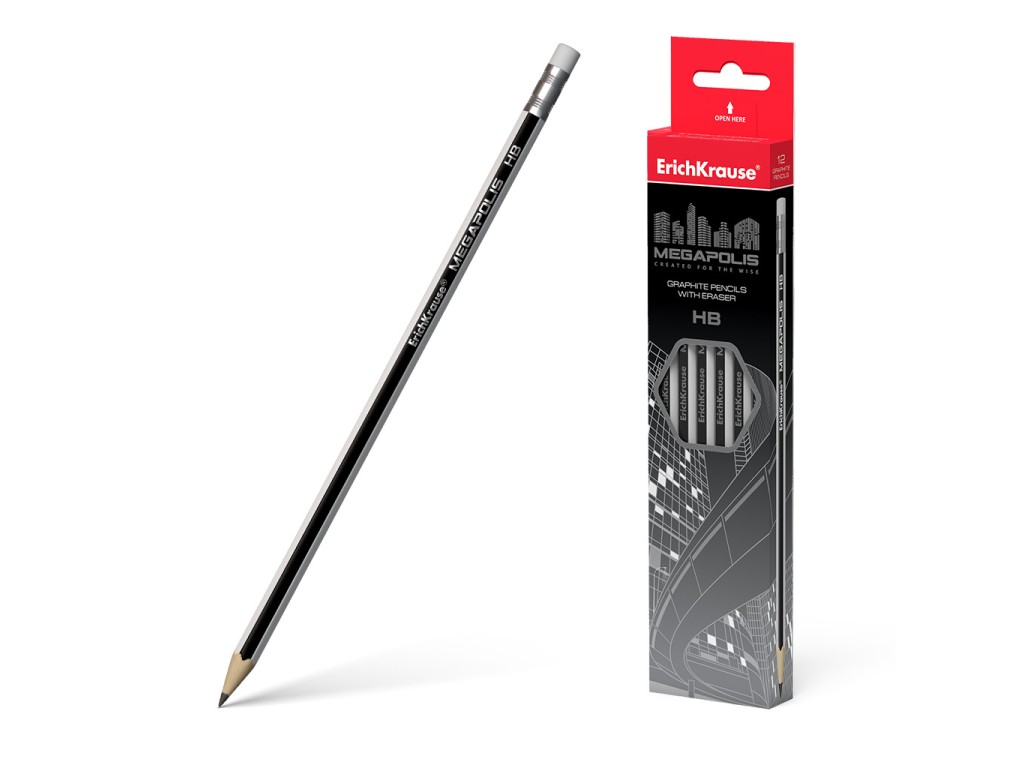 Карандаш ч/г ErichKrauseR MEGAPOLIS HB шестигранный с ластиком