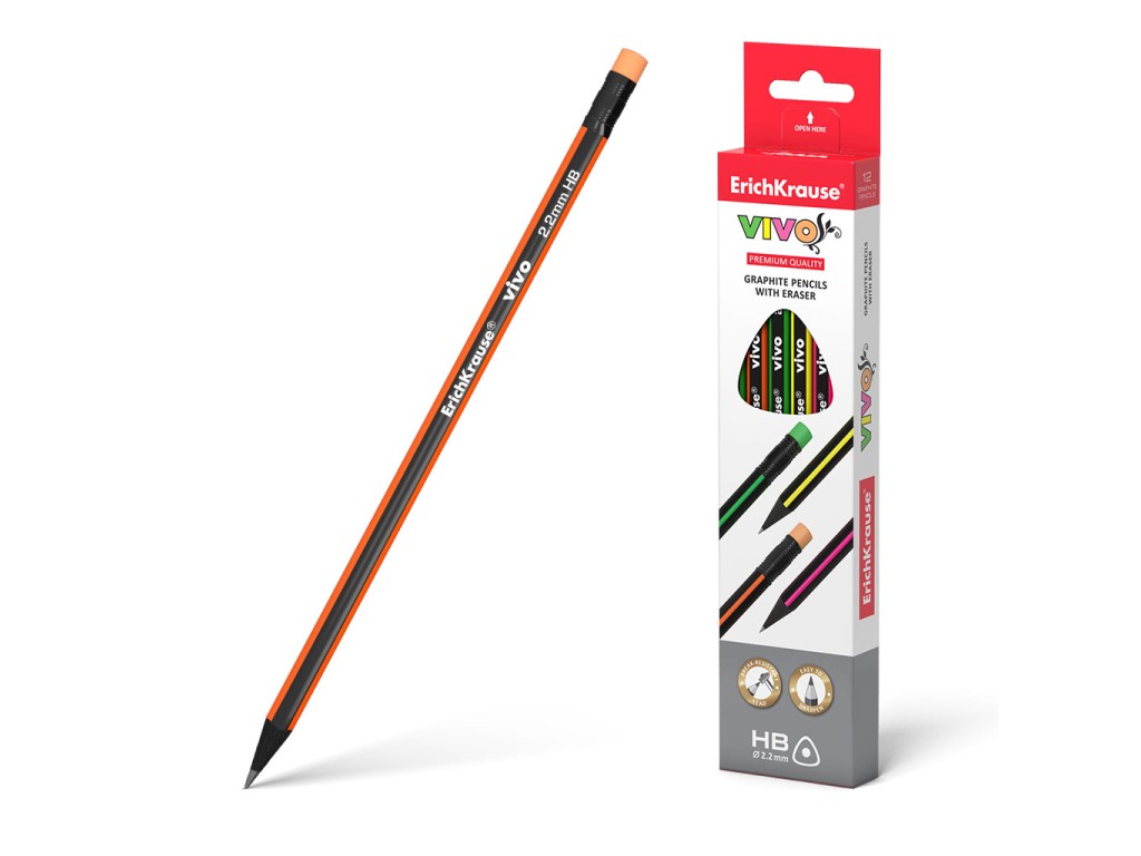 Карандаш ч/г ErichKrauseR VIVO HB трехгранный с ластиком