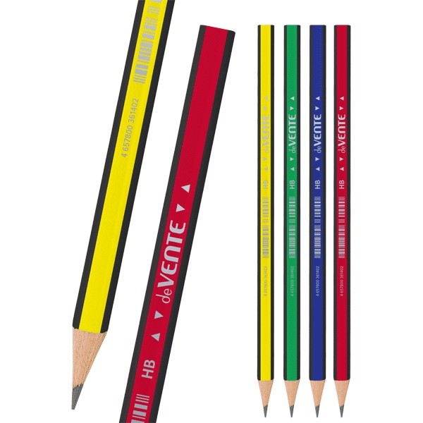Карандаш чернографитный «deVENTE» HB, диаметр грифеля 2 мм, трёхгранный без ластика, заточенный, пластиковый, цвет корпуса ассорти с черными гранями, индивидуальная маркировка, в картонной коробке