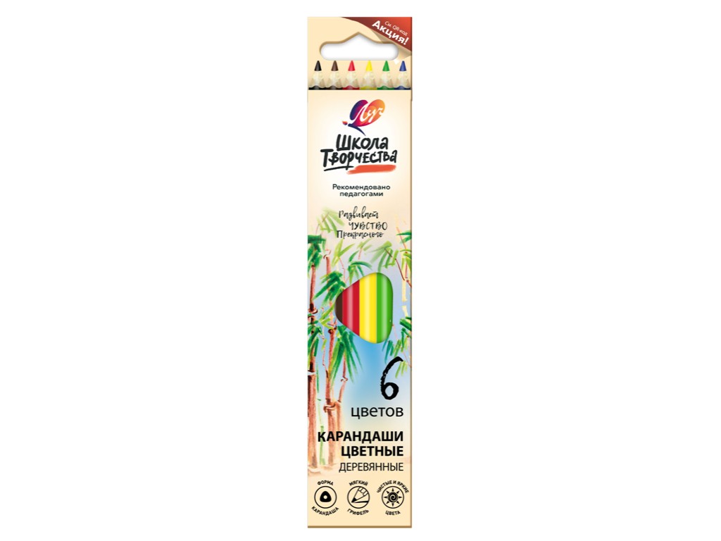 Карандаши 6цв Луч Школа Творчества трехгранные, деревянные)