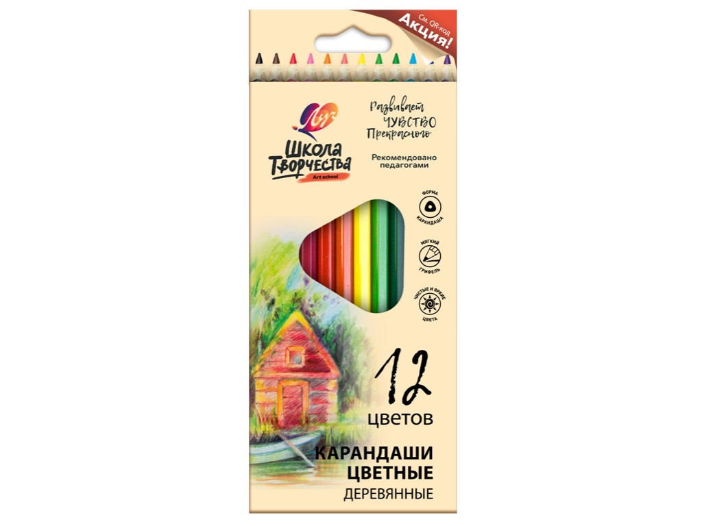 Деревянные карандаши ярких сочных цветов «Школа творчества» трёхгранной формы, изготовлены из мягкой двевесины тополя. Грифель соответствует мягкости 4М.