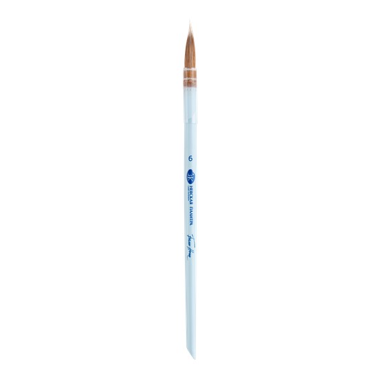 Кисти из натурального колонка и японской синтетики нового поколения «Белые Ночи» сочетают в себе лучшие свойства натурального ворса (удержание воды) и синтетического волокна (упругость и износостойкость), ворс упругий и мягкий одновременно. Созданы специально для акварельной живописи, но они также подходят для гуашевых, темперных, акриловых и масляных красок. Трендовые кисти: ворс надежно закреплен в плёночной обойме с отсутствием металлической проволоки (усовершенствованный вариант французского крепления), перевязан и проклеен. Идеальная пропорция ворса колонка и синтетики. Колонок в составе кисти обеспечивает идеальное набирание и отдачу краски, долгое удержание воды и краски, а синтетика способствует сохранению остроты кончика при письме (держит форму). За счёт увеличенной глубины посадки волосяного пучка удерживается больше влаги, чем в кистях со стандартными обоймами. Острая вершинка кисти позволяет выписывать самые сложные и тонкие формы. Функциональный кончик ручки со скосом может применяться для создания дополнительных эффектов в работе (например, в технике сграффито), при разделении листов в альбомах-склейках, а также при удалении маскирующей жидкости. Круглые кисти универсальны, используются для детальной проработки, создания широкого спектра форм и эффектов.