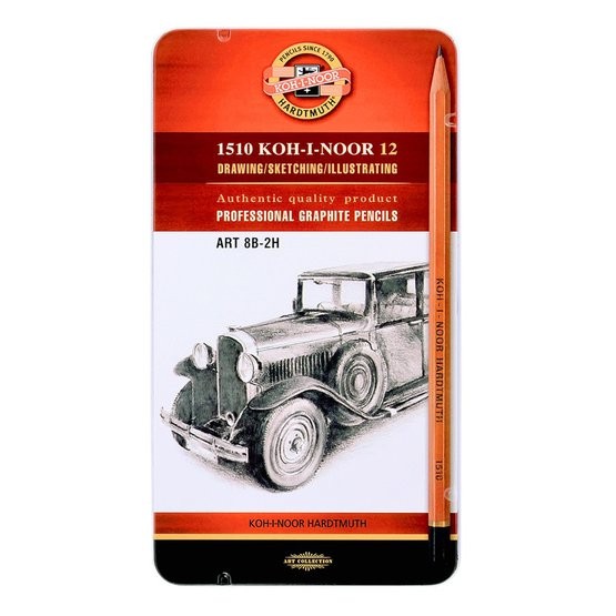 KOH-I-NOOR 1512N (12) Набор профессиональных чернографитных карандашей «Art», 12 шт, жестяная коробка