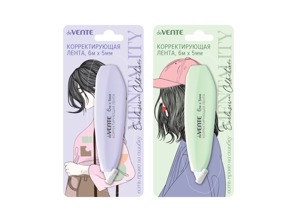 Корректирующая лента deVENTE Mentality 5 ммx6 м, сиреневый, мятный, фронтальный аппликатор