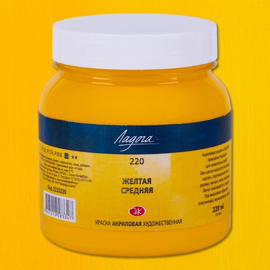 Краска акриловая 220мл Ладога Желтая средняя
