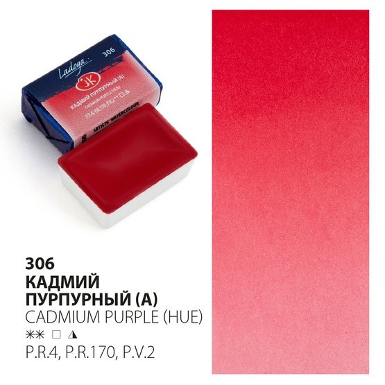 Ладога акварель кювета 2,5 мл Кадмий пурпурный акварель
