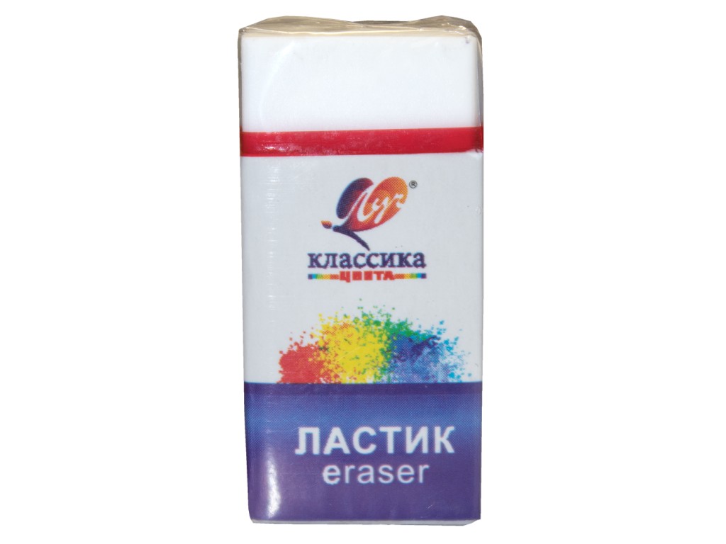 Ластики «Классика» изготовлены из термопластичной резины. Не содержат ПВХ. Цвет белый. Ластик К4 (60*19*10 мм). Каждый ластик в красочной картонной обёртке и в индивидуальной прозрачной упаковке. Промежуточная упаковка красочный шоу-бокс.