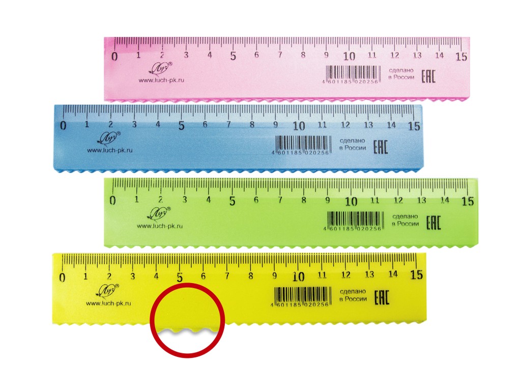 Линейка 15 см непрозрачная с волнистым краем, ассорти Луч
