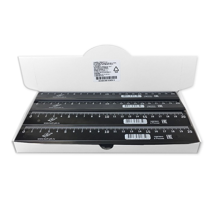Линейка 20см непрозрачная, черная Луч