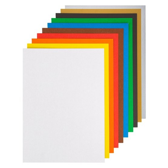 В составе набора 10 листов формата А4 по 1 листу каждого цвета. Картон односторонний, немелованный, плотность 220 гм2. Цвета яркие и насыщенные, картон нужной плотности (легко режется и сгибается). Линия прямого изгиба получается ровной и без заломов. Идеально подходит для изготовлений аппликаций, а также техник скрапбукинг и кардмейкинг.