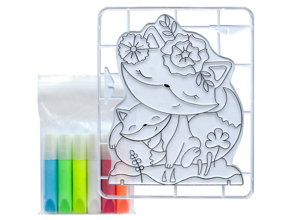 Набор красок по стеклу с трафаретом предназначен для рисования витражными красками по трафарету. Пластиковый шаблон идеально подойдёт для детей, которые только начинают осваивать эту технику рисования. А милый сюжет с мамой и малышом придётся по душе не только детям дошкольного и младшего школьного возраста, но и более взрослой аудитории.