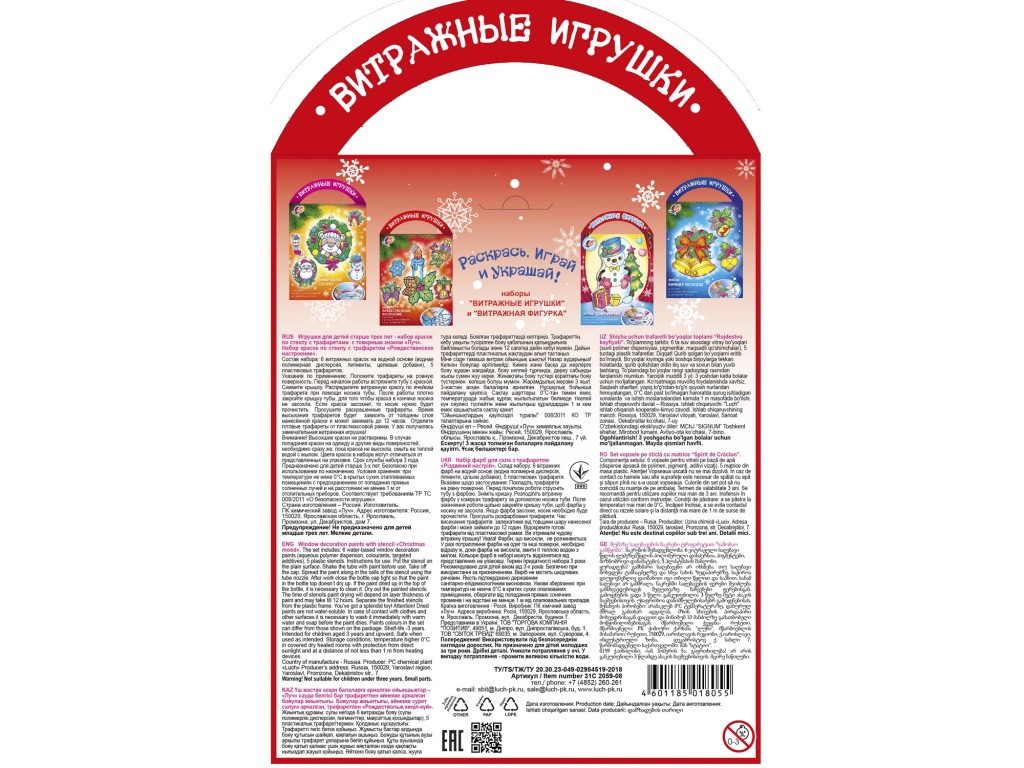 Набор «Рождественское настроение» предназначен для рисования витражными красками по трафарету. Пластиковые шаблоны-игрушки идеально подойдут для детей, которые только начинают осваивать эту технику рисования. А забавные образы фигурок придутся по душе не только детям дошкольного и младшего школьного возраста, но и более взрослой аудитории.
