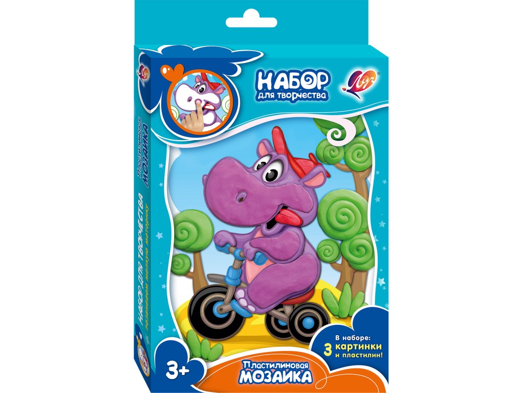Набор Пластилиновая мозаика Зайка, Овечка, Бегемотик, Воробушек Луч