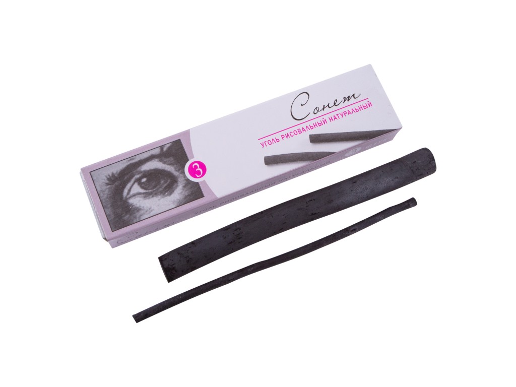 Набор угля натурального для рисования Сонет,120мм (диаметр-10/12 — 2 шт., диаметр-3/4 — 1 шт.), 3 шт