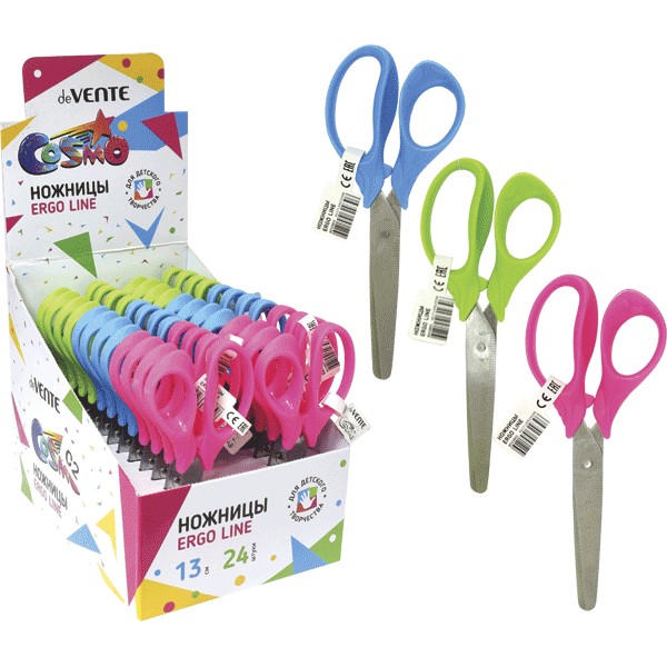 Ножницы детские «deVENTE. Cosmo Ergo Line» 13 см, с линейкой, эргономичные пластиковые кольца, в картонном дисплее, 3 цвета ассорти
