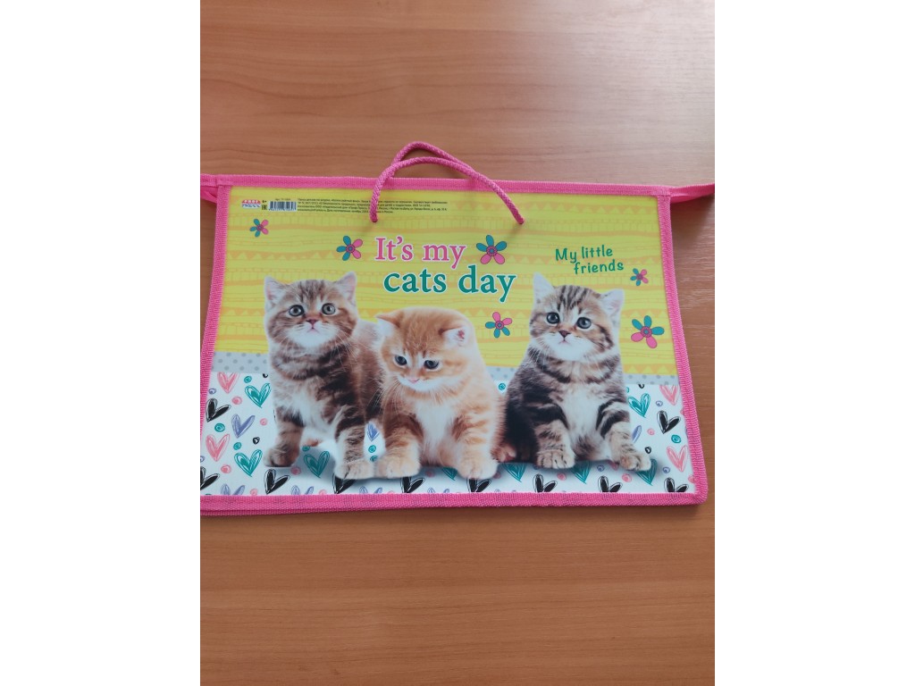Папка для тетрадей А4 молния сверху на шнурке Котята (желтый фон) пластик
