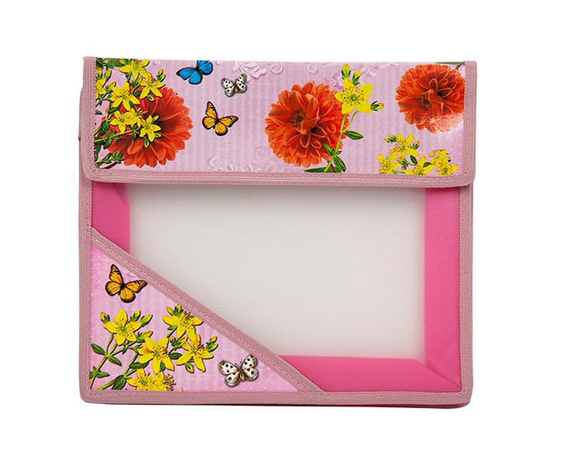 Папка для тетрадей А5 на липучке пластик Красные цветы