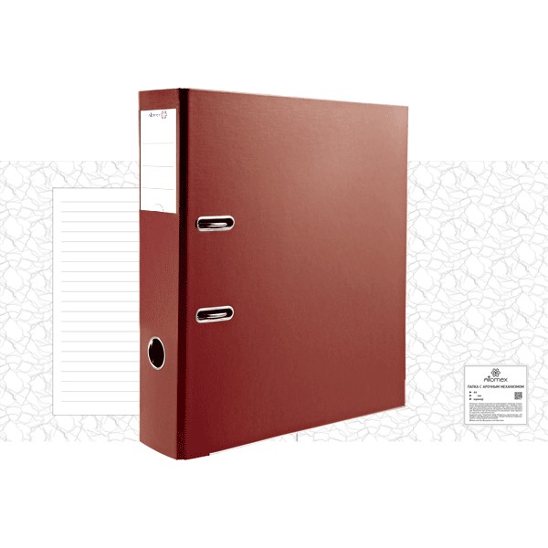 Папка с арочным механизмом «Attomex» A4 75 мм, покрытие PVC, собранная, c металлической окантовкой нижней кромки, наварной карман с этикеткой, запечатка форзаца, красная