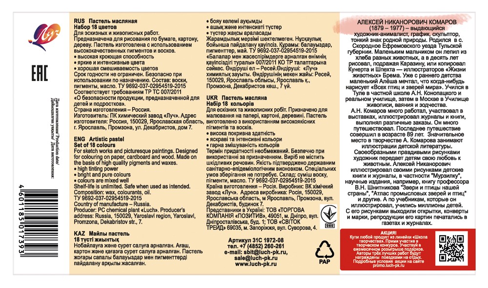 Будьте первым, кто оставил отзыв на “Пастель масляная 18цв трехгранная Луч Школа творчества”