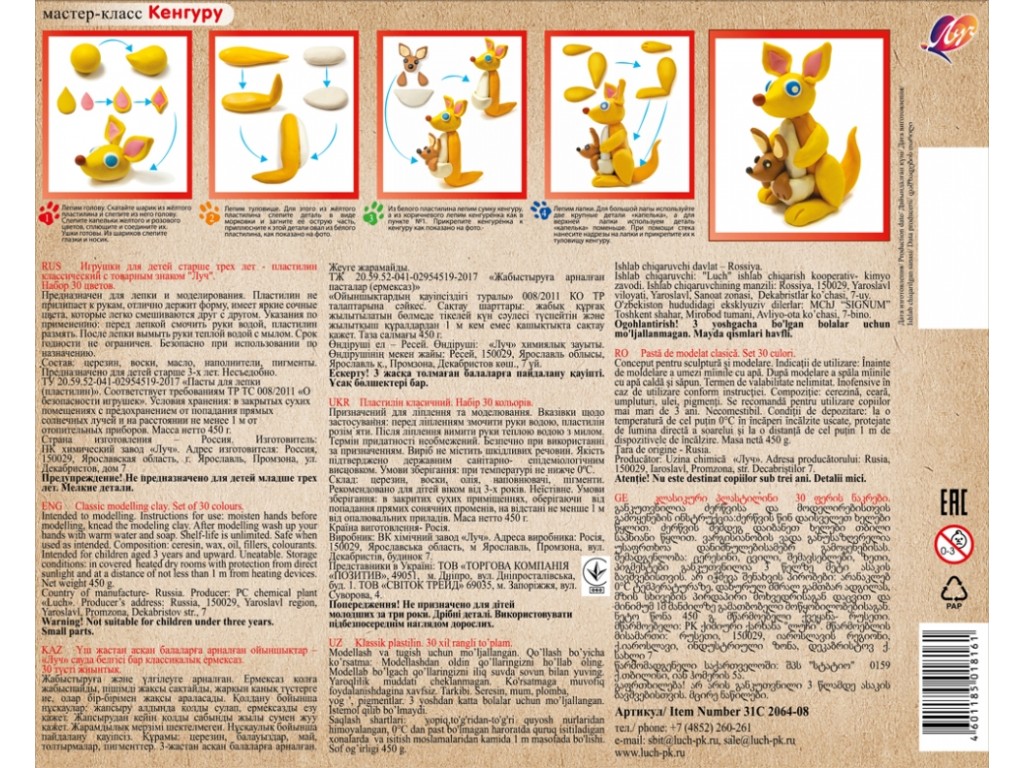 Будьте первым, кто оставил отзыв на “Пластилин 30цв Луч ZOO длинный брусок 450гр”