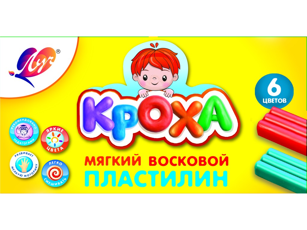 Пластилин 6цв Луч Кроха мягкий восковой, 99гр, со стеком