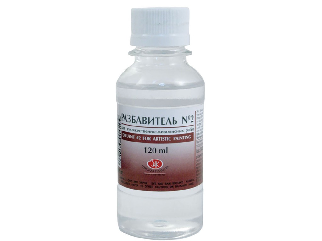 Состоит из уайт-спирита. Используется для очистки кистей, палитр и полотен от красочного слоя. Не пригоден для разбавления художественных лаков.
