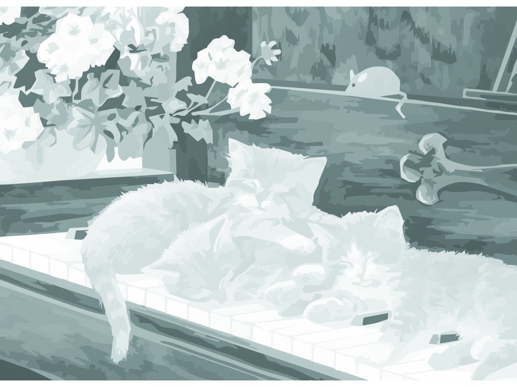 Сонет Холст на картоне с эскизом, Котята, 30х40 см
