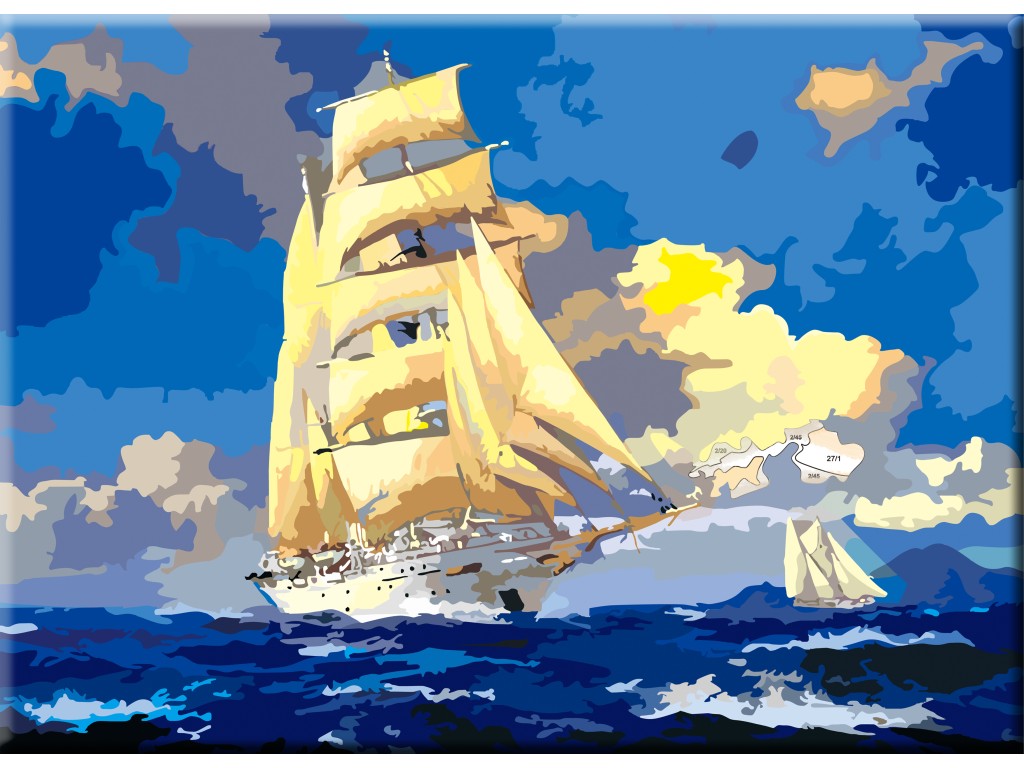 Сонет Холст на картоне с эскизом, Парусник в море, 30х40 см