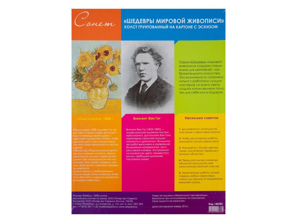 Холст на картоне «Сонет» с эскизом изготовен из 100 % хлопка. Серия «Шедевры живописи» создана специально для ценителей изобразительного искусства. Это возможность соприкоснуться с работами лучших мастеров со всего света, создать копии великих полотен для себя или в подарок.