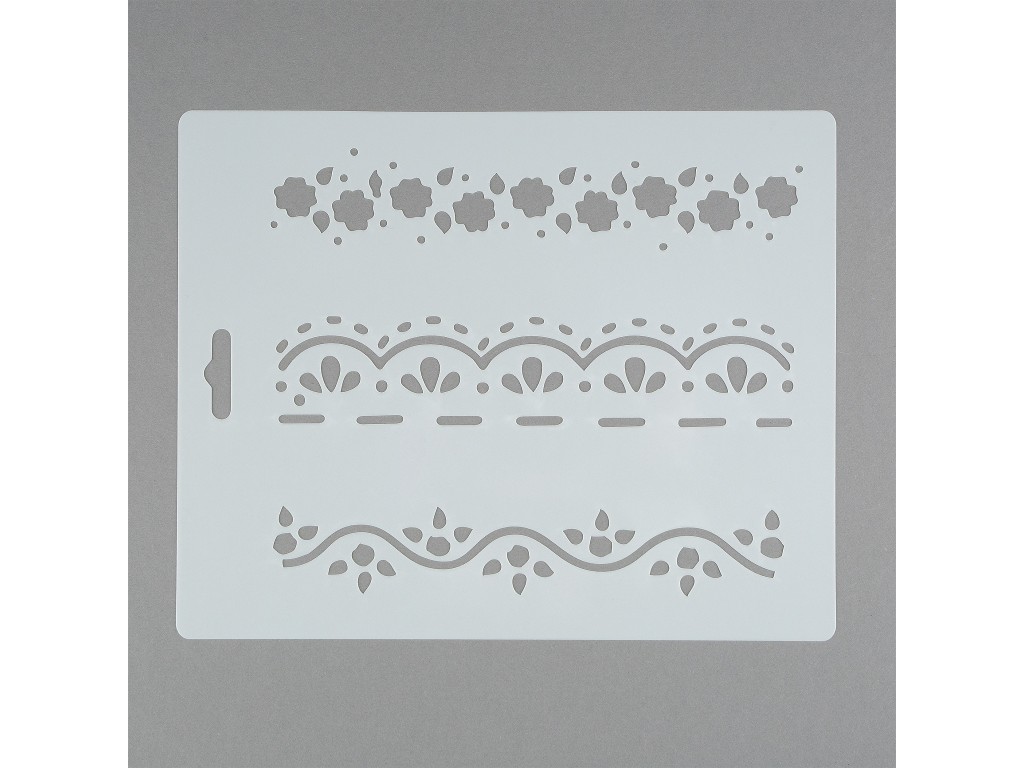 Гибкий трафарет с растительными орнаментами (3 вида) предназначен для нанесения изображения на любые предметы из стекла, керамики, дерева, ткани и др. Трафарет изготовлен из пластика.