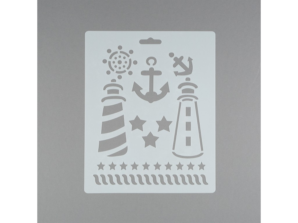 Гибкий трафарет с рисунком «Маяки, якоря» предназначен для нанесения изображения на любые предметы из стекла, керамики, дерева, ткани и др. Трафарет изготовлен из пластика.