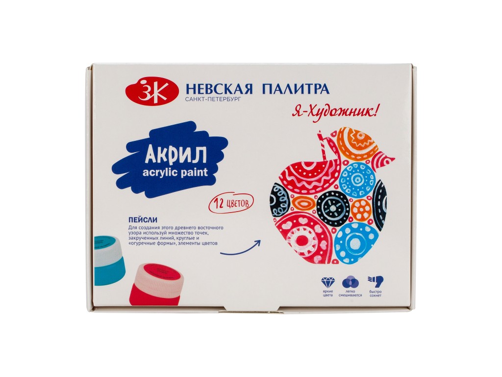 Акриловые глянцевые краски для детского творчества на основе водной акриловой дисперсии. Предназначены для росписи декоративных изделий из бумаги, картона, дерева, металла, кожи. Краски хорошо смешиваются, быстро высыхают. После высыхания приобретают глянцевый блеск, не смываются водой. После работы руки вымыть с мылом, кисти и инструменты промыть водой. Храните краски в плотно закрытой таре. Перед применением краску тщательно перемешать.Для детей старше 3 лет. Внимание! Дети до трех лет должны находиться под наблюдением взрослых.